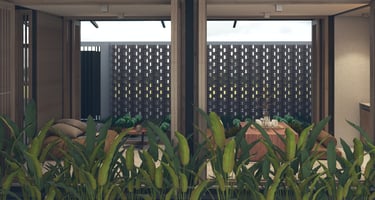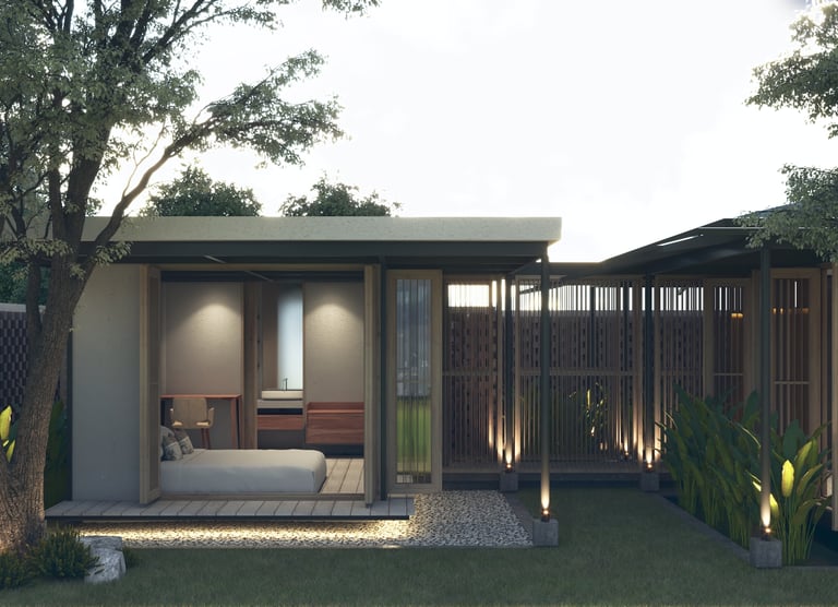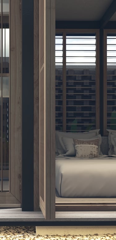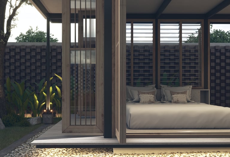 By extending a private garden to connect with the main bedroom, this home transforms the resting space into a dynamic, multi-purpose environment. The design provides a perfect balance of sun and shade, offering a continuous connection to nature.