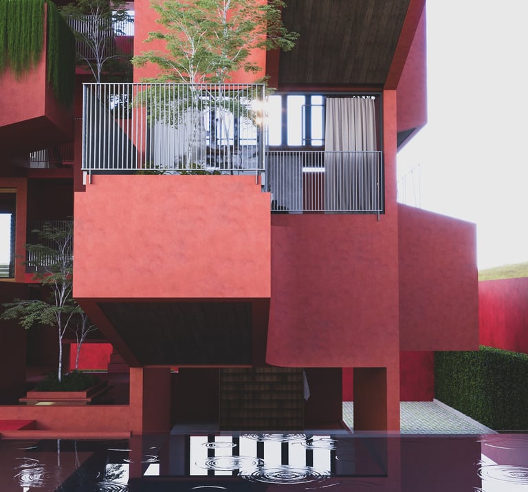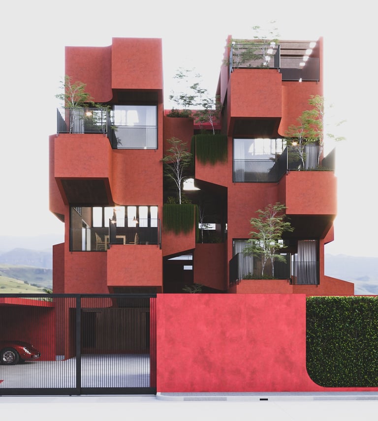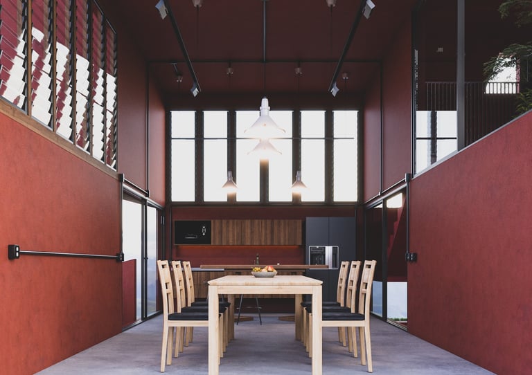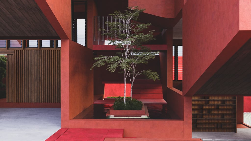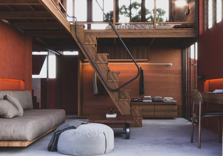 A thoughtfully designed split-level home that maximizes interior space efficiency while seamlessly integrating natural elements to compensate for any lost areas, creating a harmonious connection with the environment.