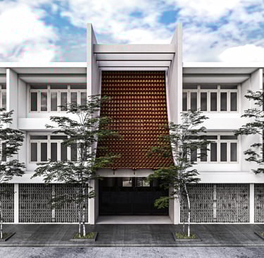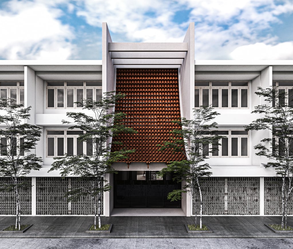 Our design concept, called "Thai Retell", reinterprets traditional Thai elements to fit the modern context. We incorporated a facade that blocks sunlight, provides privacy, and reduces noise, while still allowing airflow into the building. Local materials like terracotta tiles are used to enhance the design.