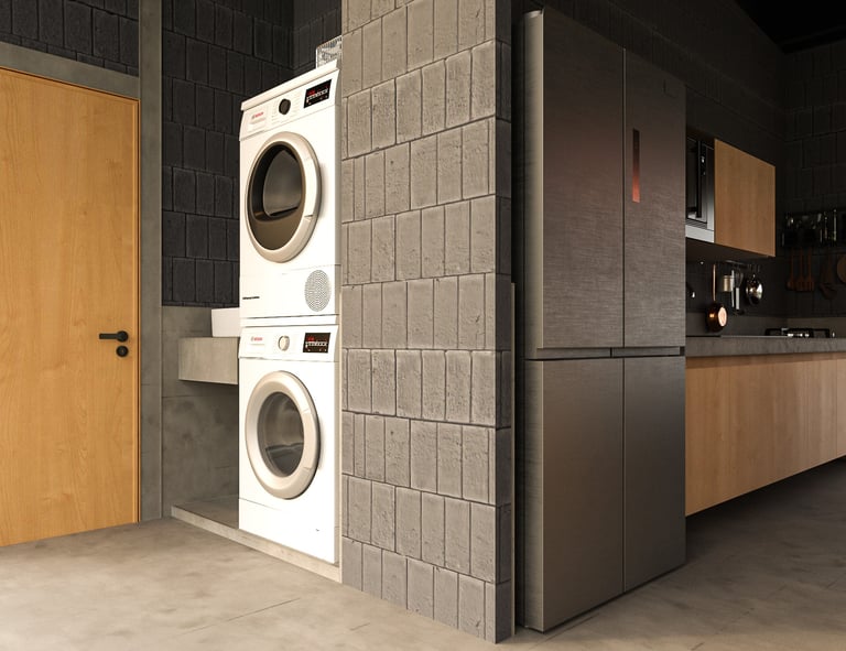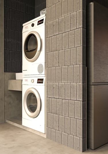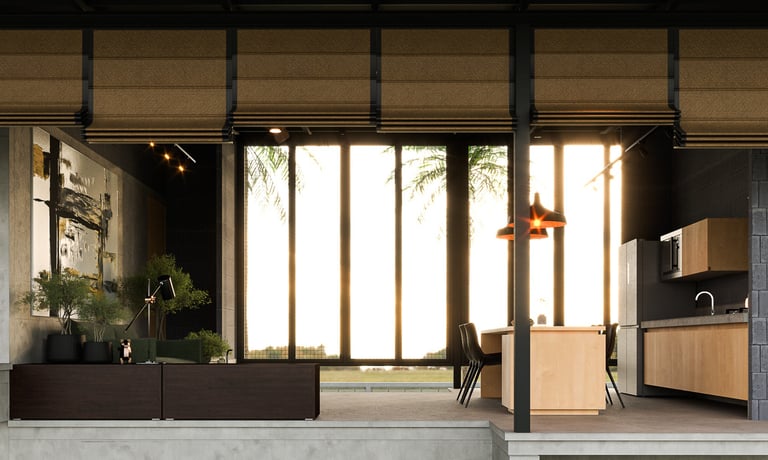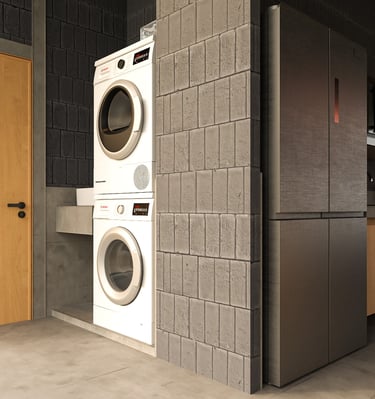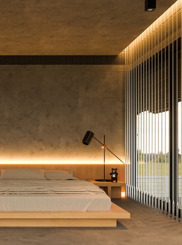 The house uses lightweight EKOBLOK bricks with low thermal conductivity, left exposed to reveal their raw beauty while reducing costs. Key spaces—bedrooms, bathrooms, and kitchen—are finished with polished plaster for easy maintenance. The 2-inch PU metal sheet roof, paired with corrugated panels, eliminates the need for a ceiling, showcasing a simple yet efficient material approach.