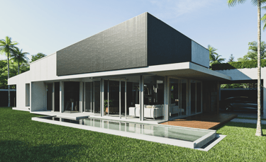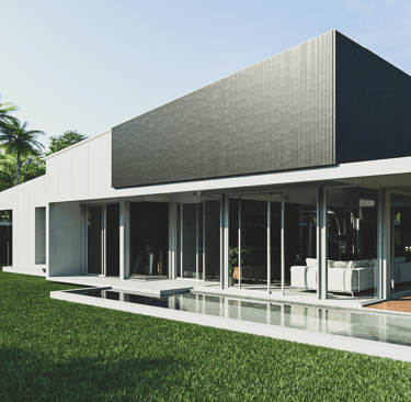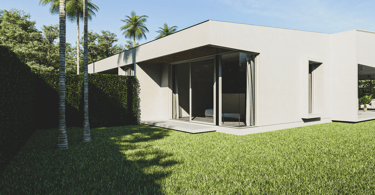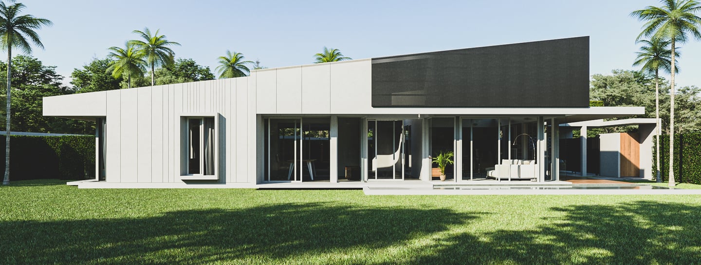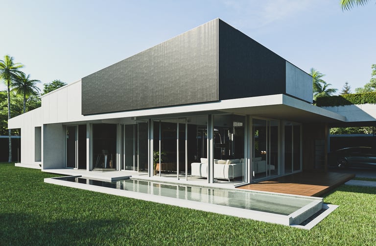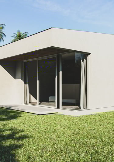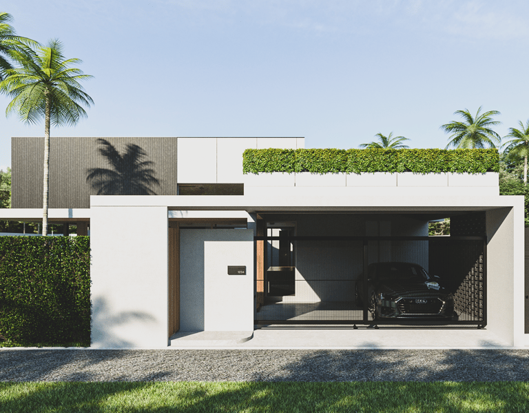The house features a minimalist style, emphasizing simplicity