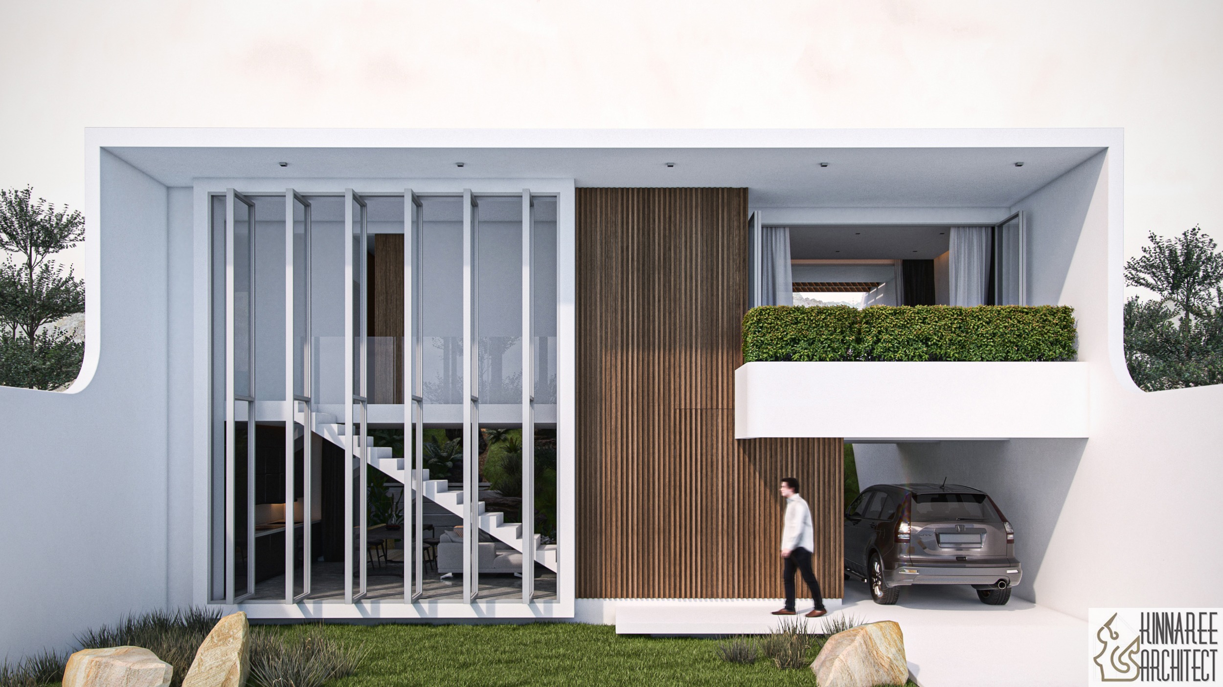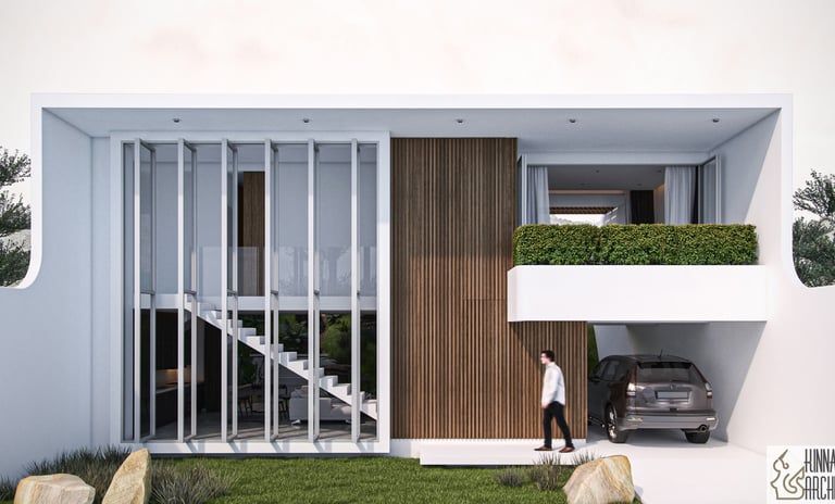 The Slant House challenges traditional residential design through its distinctive angular facade that creates dynamic visual interest while maintaining sophisticated livability.