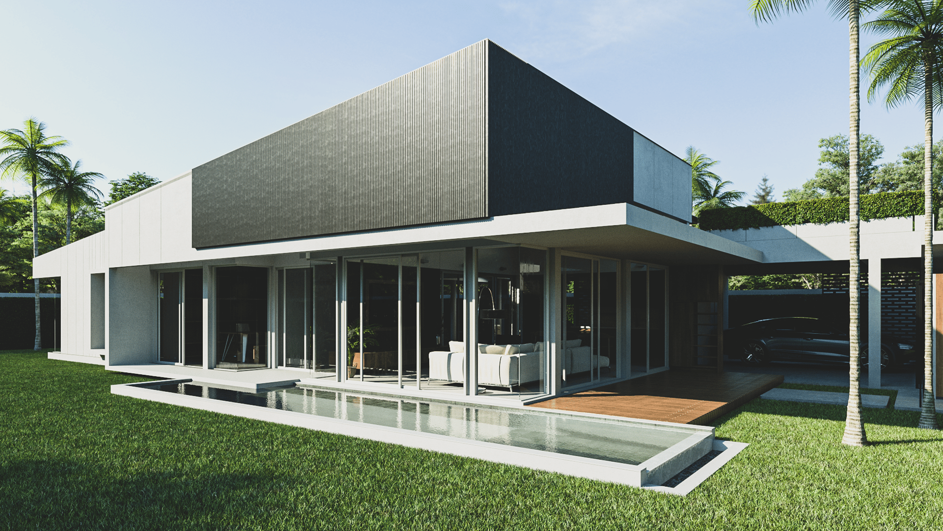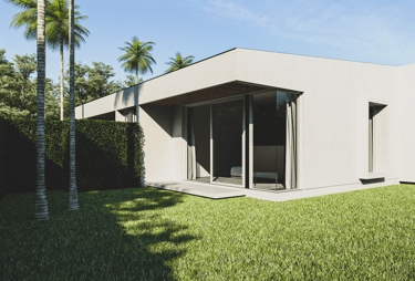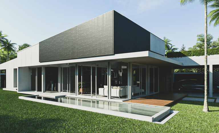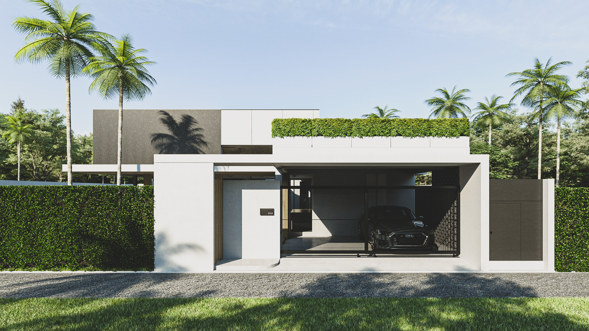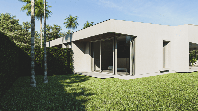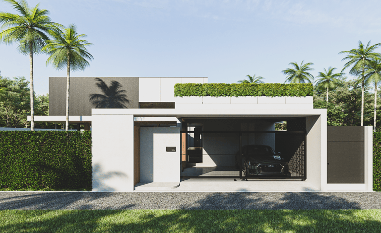 The house features a minimalist style, emphasizing simplicity